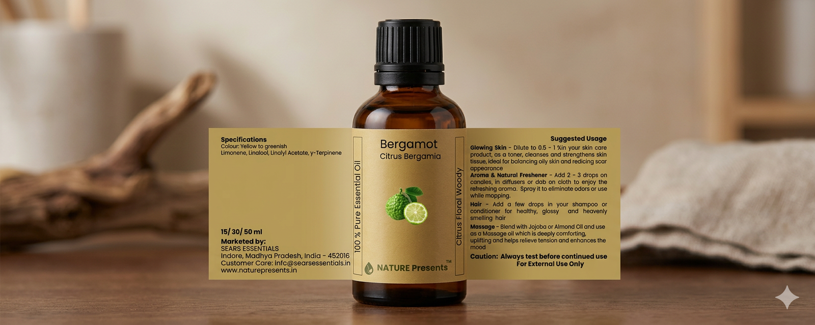 Bergamot Essential Oil offers a rejuvenating blend of citrus warmth and floral freshness, delivering an unparalleled aromatherapy experience. Sourced from the finest bergamot oranges, this oil is carefully extracted to retain its natural purity and potency, ensuring it provides maximum benefits for your mind and body.