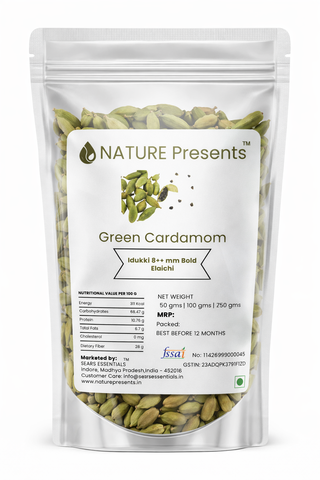 Our Green Cardamom stands out for its robust flavor, crisp texture, and vibrant green hue, reflecting its premium grade. Sustainably harvested and carefully processed, the cardamom retains its natural essential oils, giving it a distinctly rich and fresh aroma. Whether you’re adding it to desserts, chai, or savory dishes, you can always count on its unmatched flavor profile to make a difference.