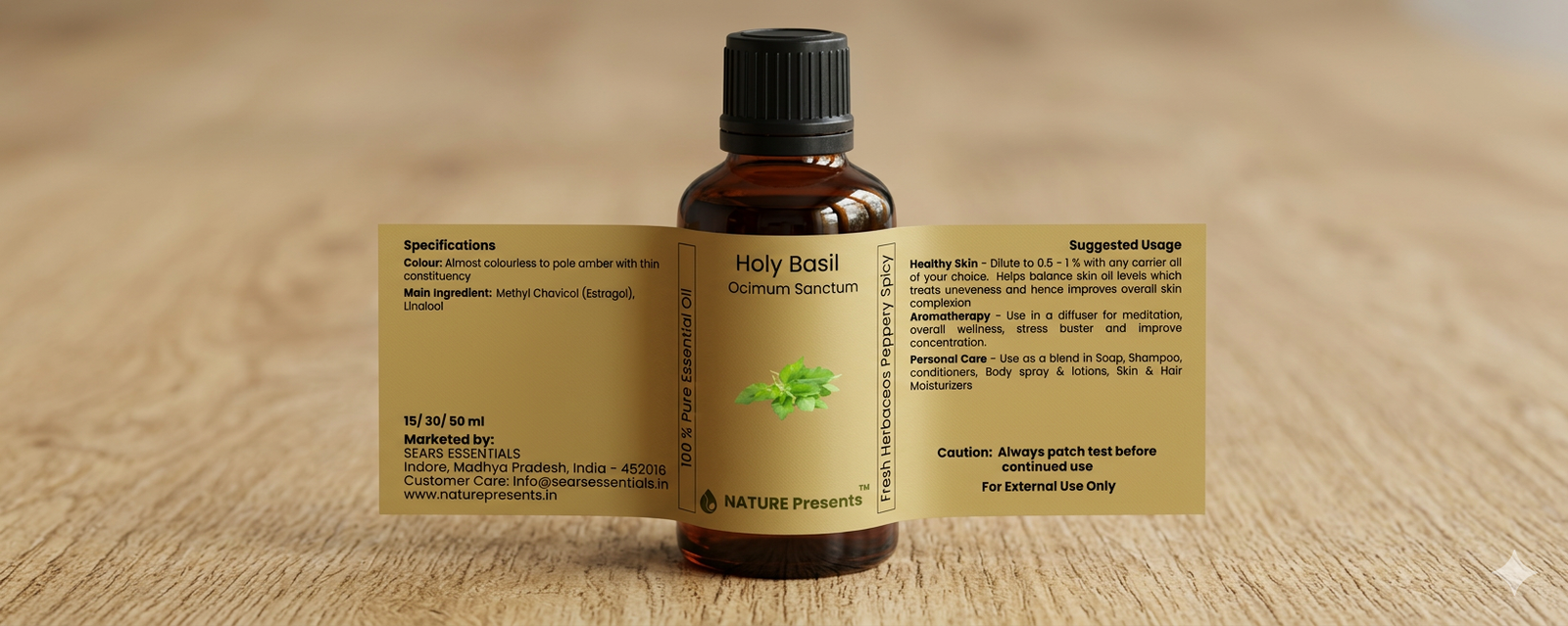 Transform your wellness routine with our 100% Pure Holy Basil (Tulsi) Essential Oil, a trusted solution sourced naturally and crafted to the highest standards. Revered for centuries in Ayurveda, Tulsi is celebrated for its exceptional therapeutic qualities, making it the perfect addition to your home and self-care practices.