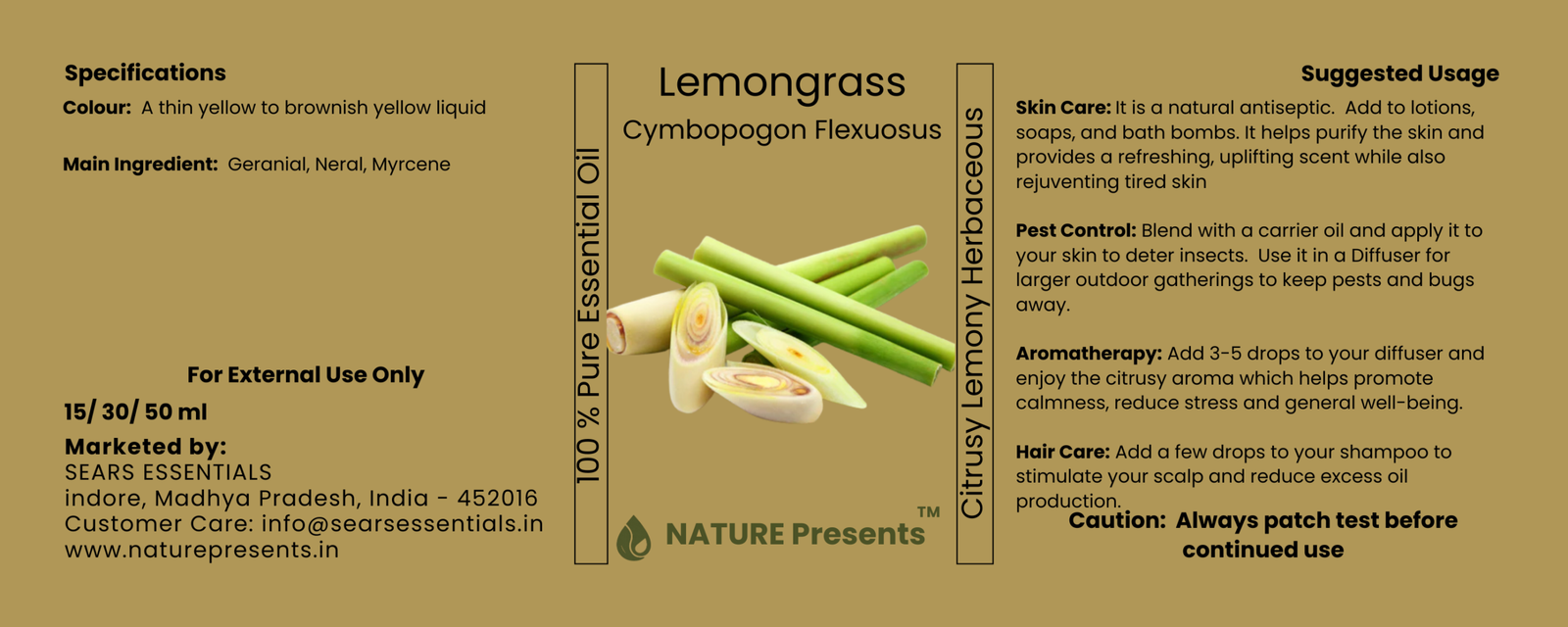 - Botanical Name: Cymbopogon citratus