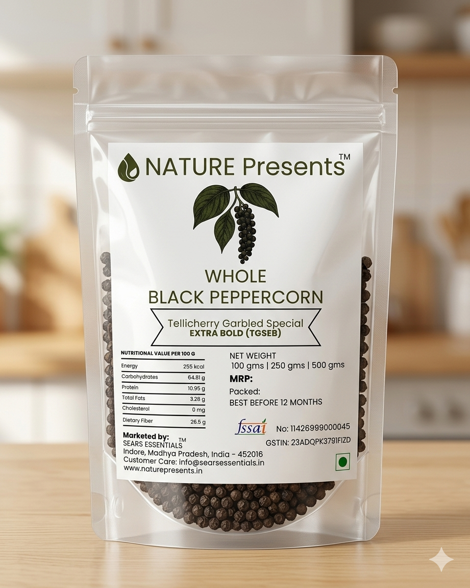 Experience the unparalleled quality of Tellicherry Garbled Special Bold Black Peppercorns (TGSEB) (4.55 mm). These premium-grade, oversized peppercorns offer a rich aroma and robust flavor that culinary enthusiasts adore. Perfect for transforming everyday dishes into gourmet delicacies, this is the spice your kitchen needs.